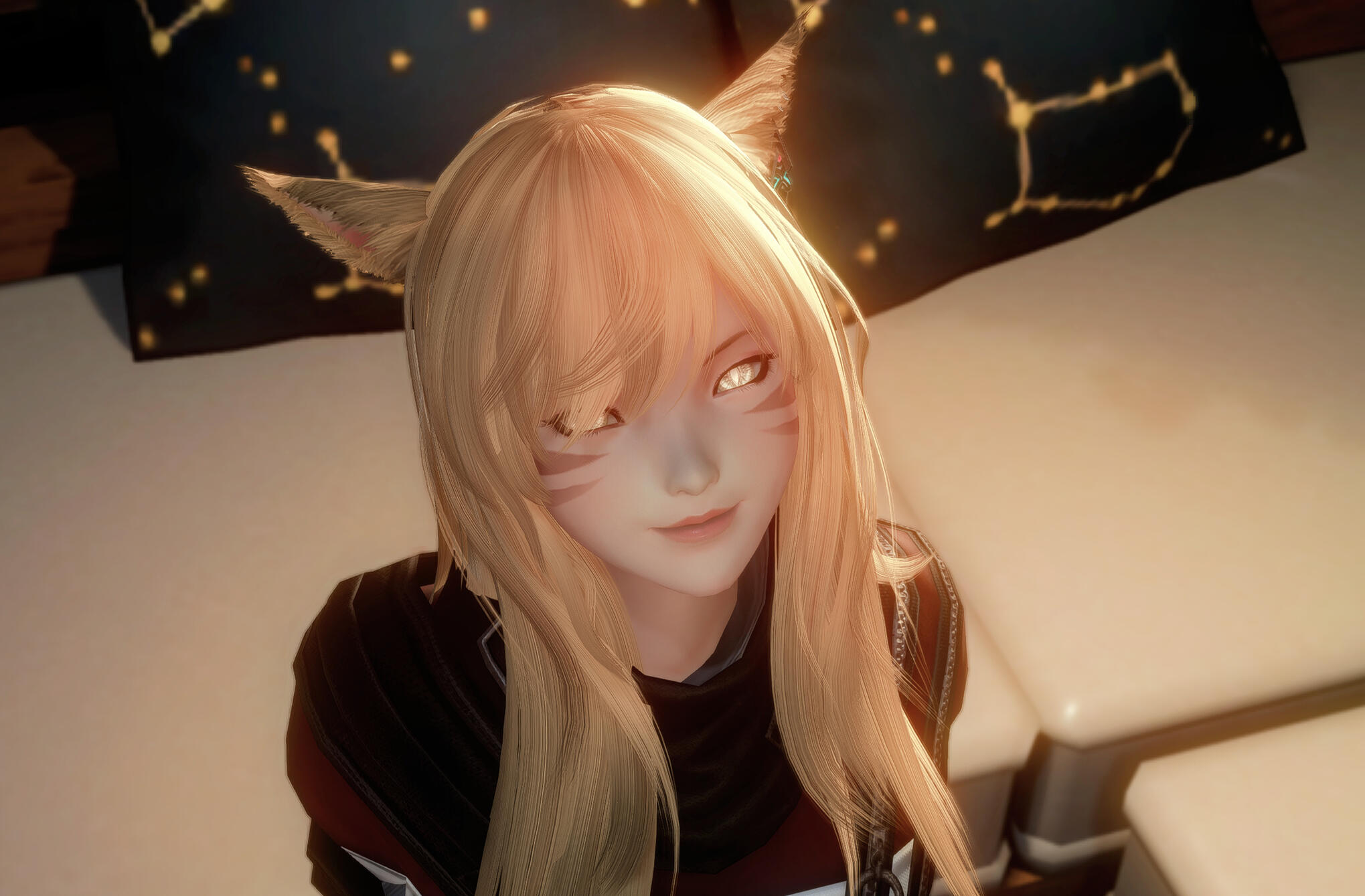 Today, Q'ithelyn is the chief of the Lamyr Trading Company, a small merchant outfit that operates its' own caravan out of Eorzea. She deals primarily in spices, wines, textiles, and a little bit of alchemical supply. When Q'ithelyn is particularly hard-up for gil, she will also accept the occasional smuggling job or join adventuring parties as a healer-for-hire. Perhaps wishing to reconnect with her roots as a healer, she has also recently begun studying as an Astrologian in between her caravan's trips across the Star.